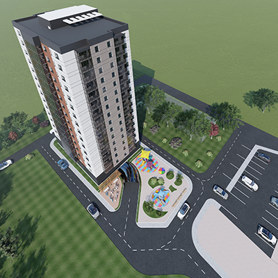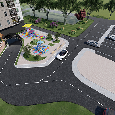 Гэр бүлд ээлтэй хүүхдийн тоглоомын талбай, автомашины зогсоолын шийдэлтэй
